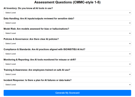 fixed-fee service to assess your AI compliance, risk posture, and governance readiness.